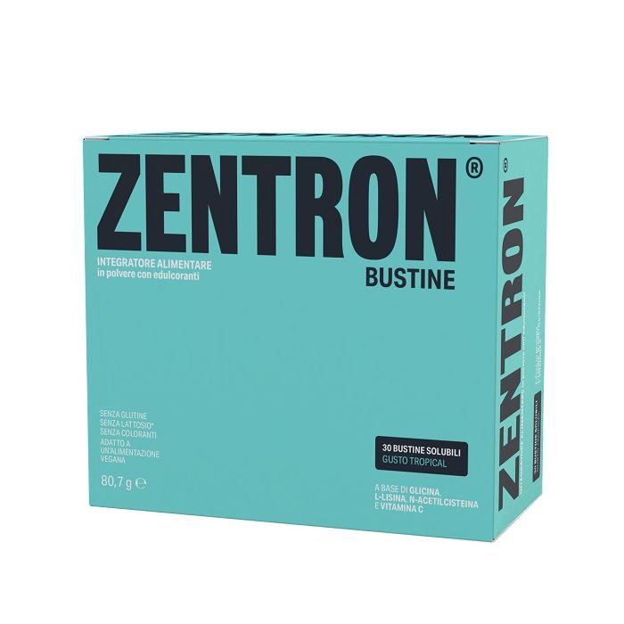 Integratore alimentare in bustine da sciogliere in acqua a base di glicina, L-lisina, N-acetilcisteina e vitamina C. La vitamina C contribuisce alla normale funzione del sistema immunitario e alla protezione delle cellule dallo stress ossidativo.