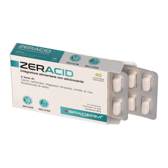 Integratore alimentare a base di calcio carbonato, magnesio idrossido, amido di riso e bicarbonato di sodio. Il calcio contribuisce alla normale funzione degli enzimi digestivi.